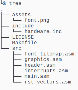 The source is commented up so it shouldn’t be too hard to follow. You’ll want to grab a copy of “hardware.inc” from the RGBDS website. It’s full of DEFs for various registers and flags, so you don’t have to write them yourself or stick a bunch of magic numbers in your code.